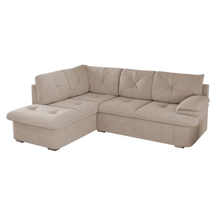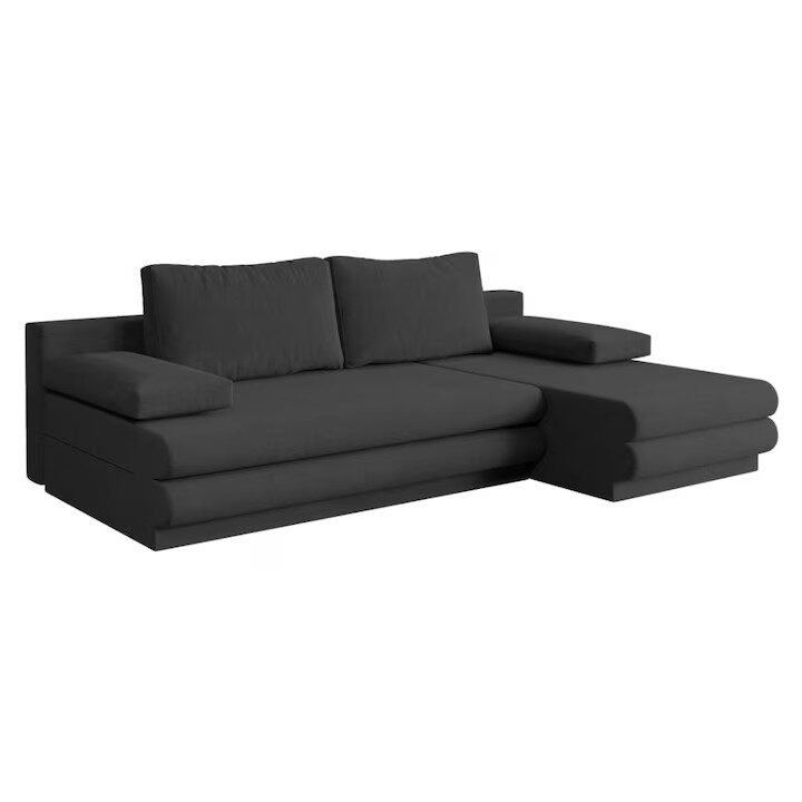 Materialul textil este plăcut la atingere, iar extensia transformă colțarul într-un pat comod pentru oaspeți sau utilizare ocazională.