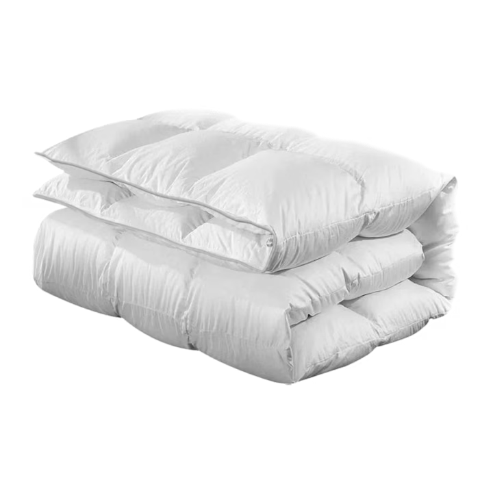 Aceasta este pentru cei care nu glumesc când vor căldură. E casetată și are un amestec generos de puf și pene. Greutatea totală de 3.03 kg spune totul.